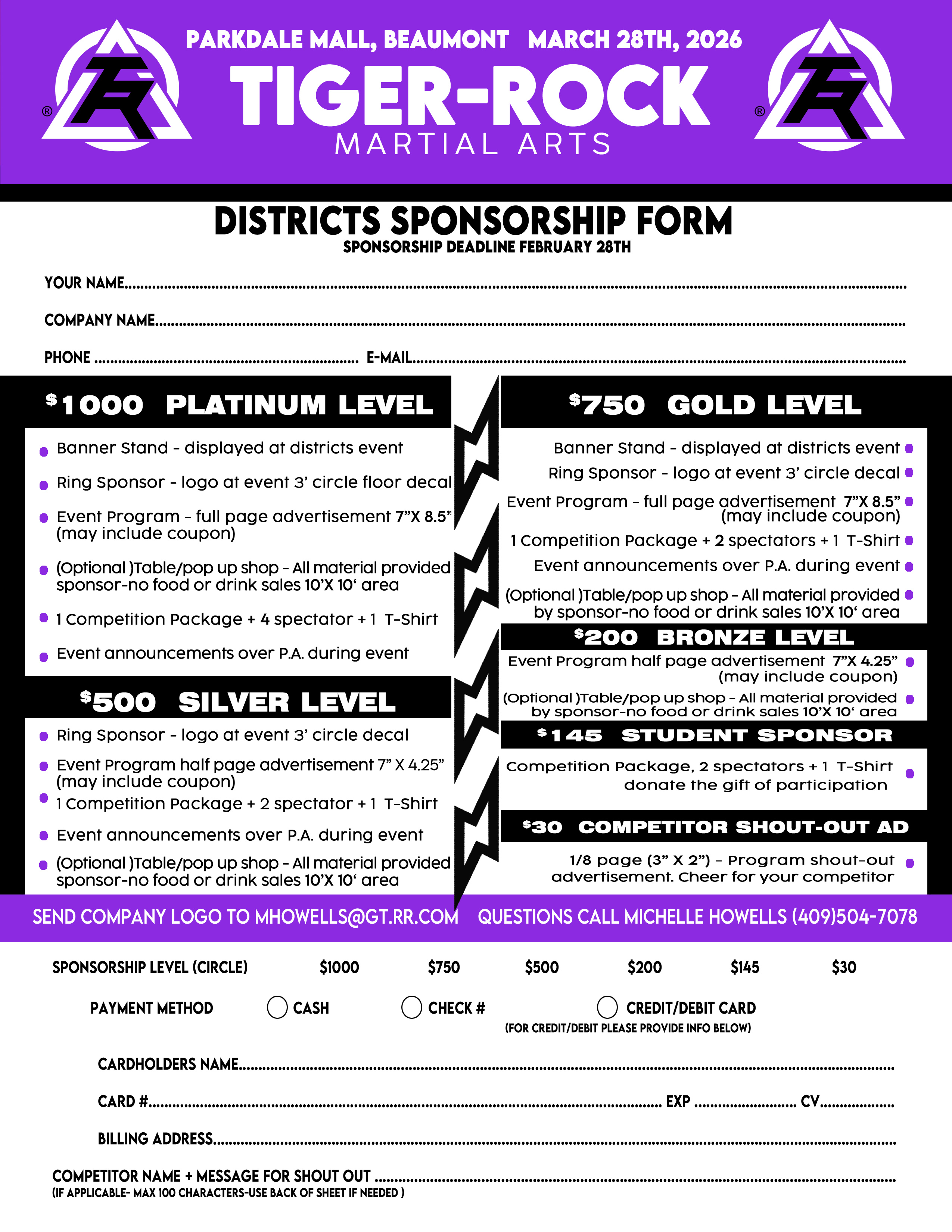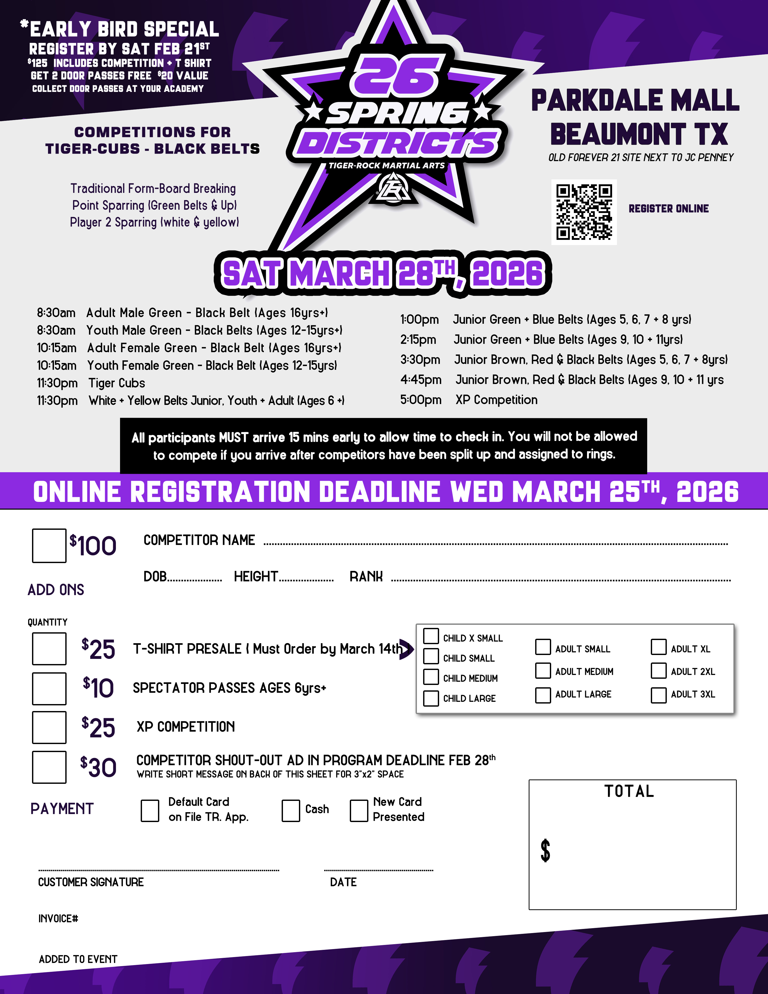 Early Bird Special Ends Feb 21st – Get 2 door passes FREE with purchase of competition package and t-shirt